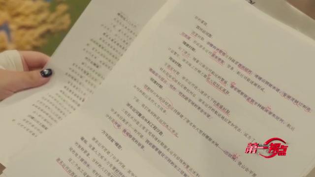 这是安珉纾查阅上千页资料后写成的讲解稿。每个段落,每个句子,都用不同颜色和符号,标注出密密麻麻的重点。
