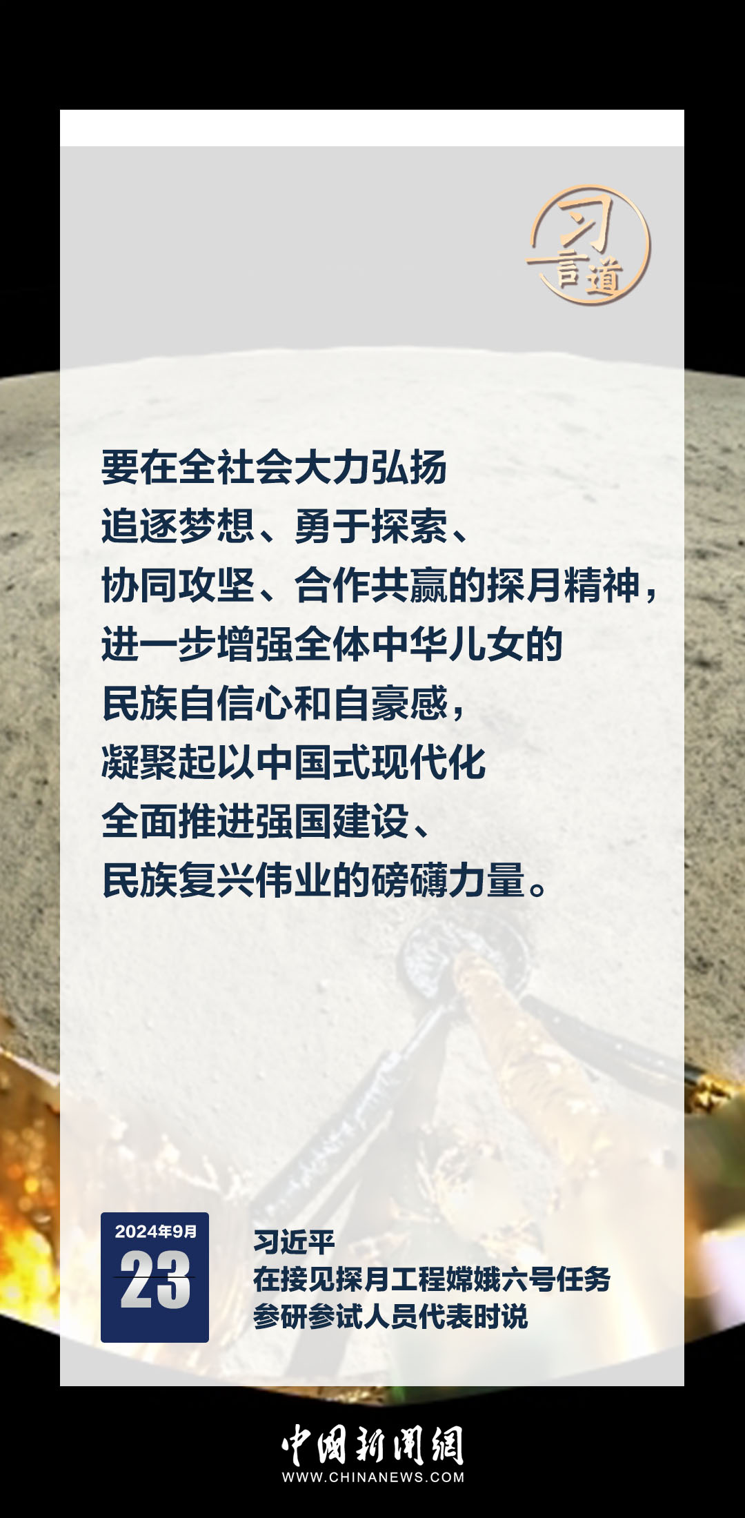中共中央总书记、国家主席、中央军委主席习近平23日在人民大会堂接见探月工程嫦娥六号任务参研参试人员代表时发表重要讲话。习近平指出——