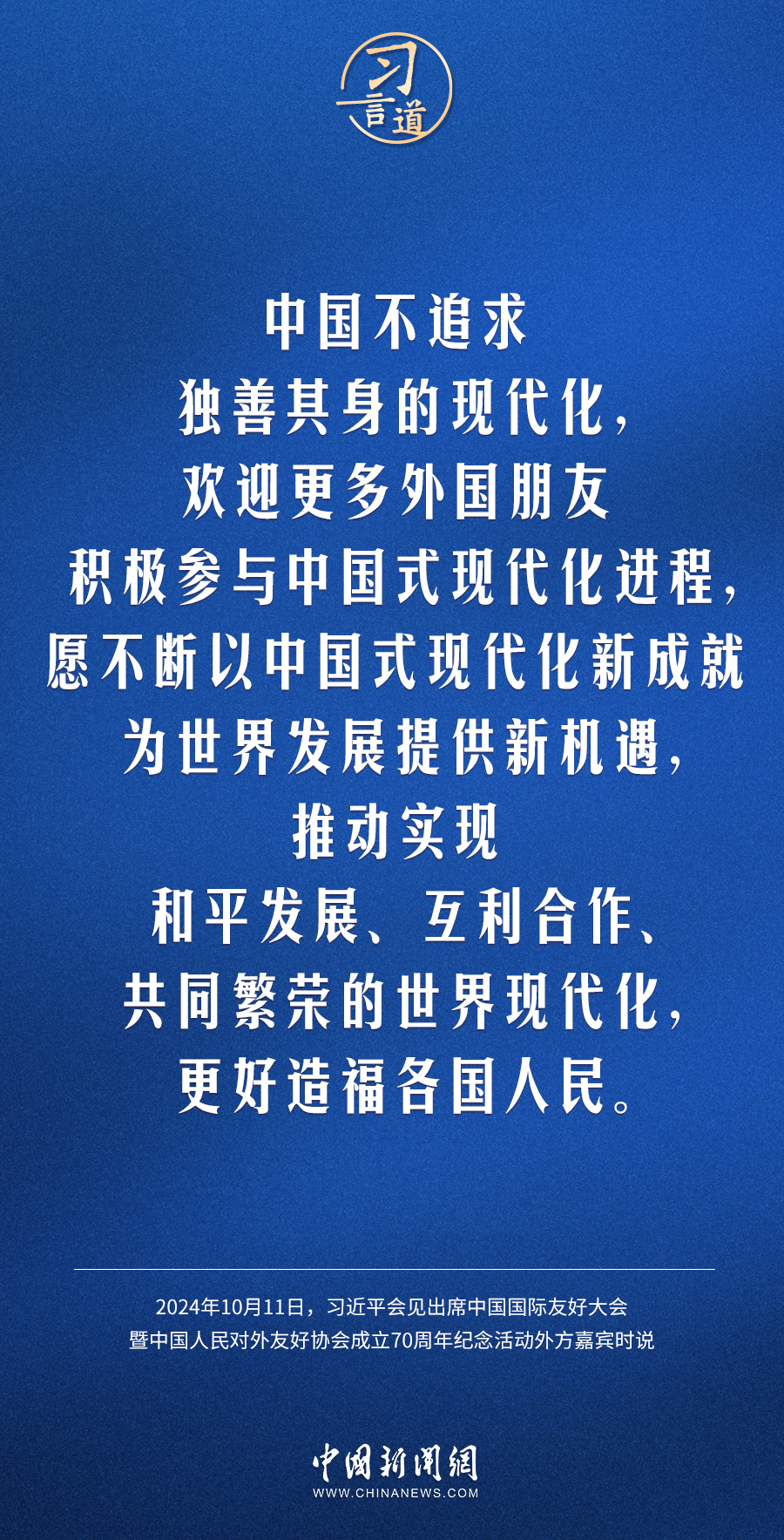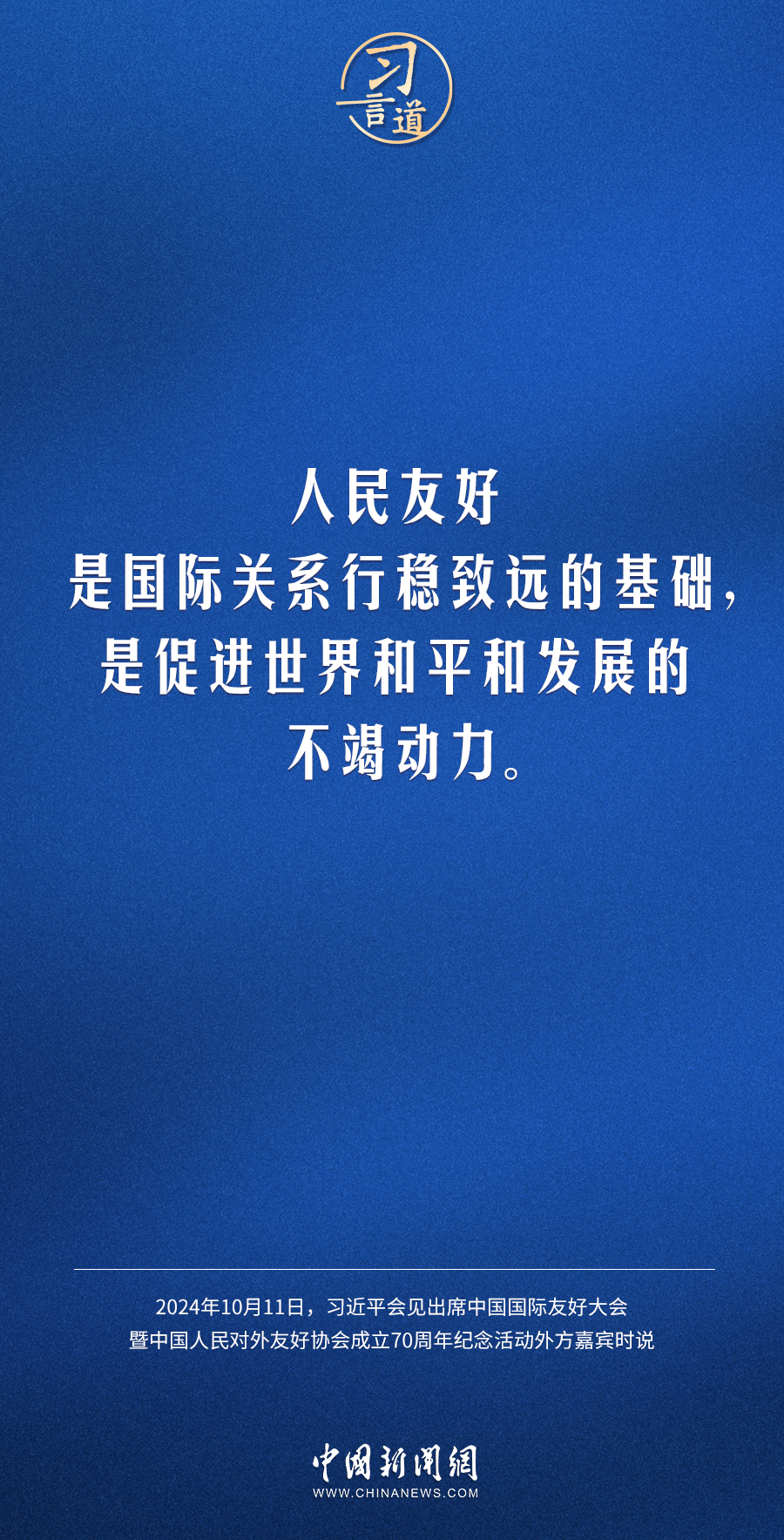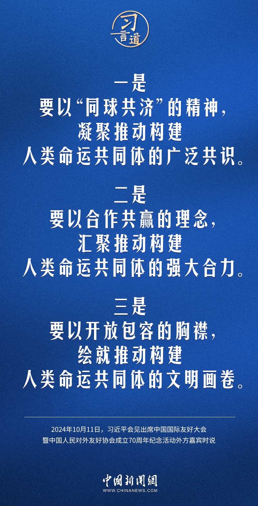 10月11日,国家主席习近平在北京人民大会堂集体会见出席中国国际友好大会暨中国人民对外友好协会成立70周年纪念活动的外方嘉宾。习近平指出——