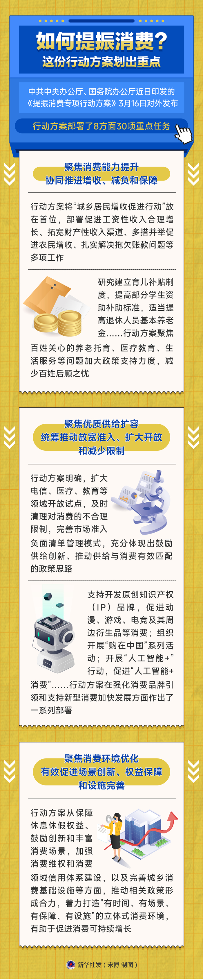 新华社北京3月16日电 题:如何提振消费?这份行动方案划出重点