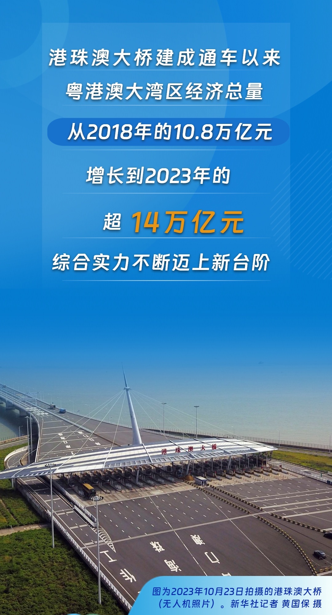 一桥连三地,天堑变通途。这座连接粤港澳三地的大桥不断刷新车流量客流量纪录,日益成为大湾区人员和货物往来的大动脉。塑造大湾区新格局,一幅世界级湾区的壮美画卷,在大桥的见证下正徐徐展开。