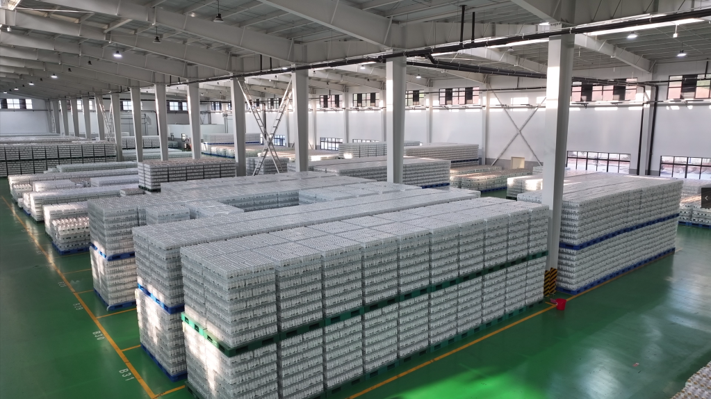 2024年10月30日拍摄的丹江口武当山水饮料有限公司仓库。(王世霖 摄)