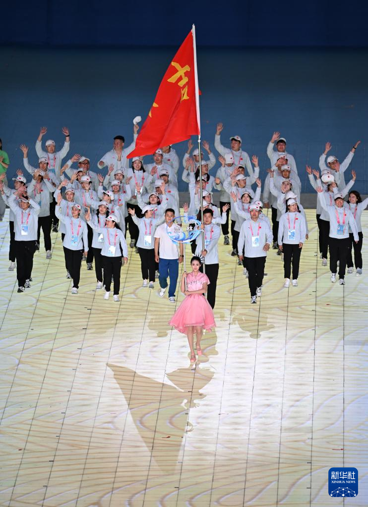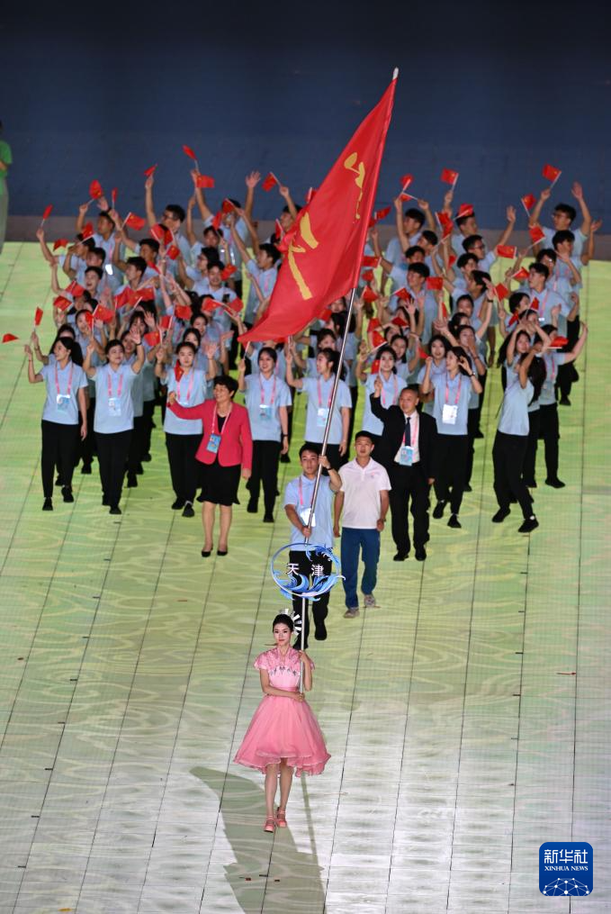 11月22日,天津市代表团在开幕式上入场。新华社记者 张博文 摄