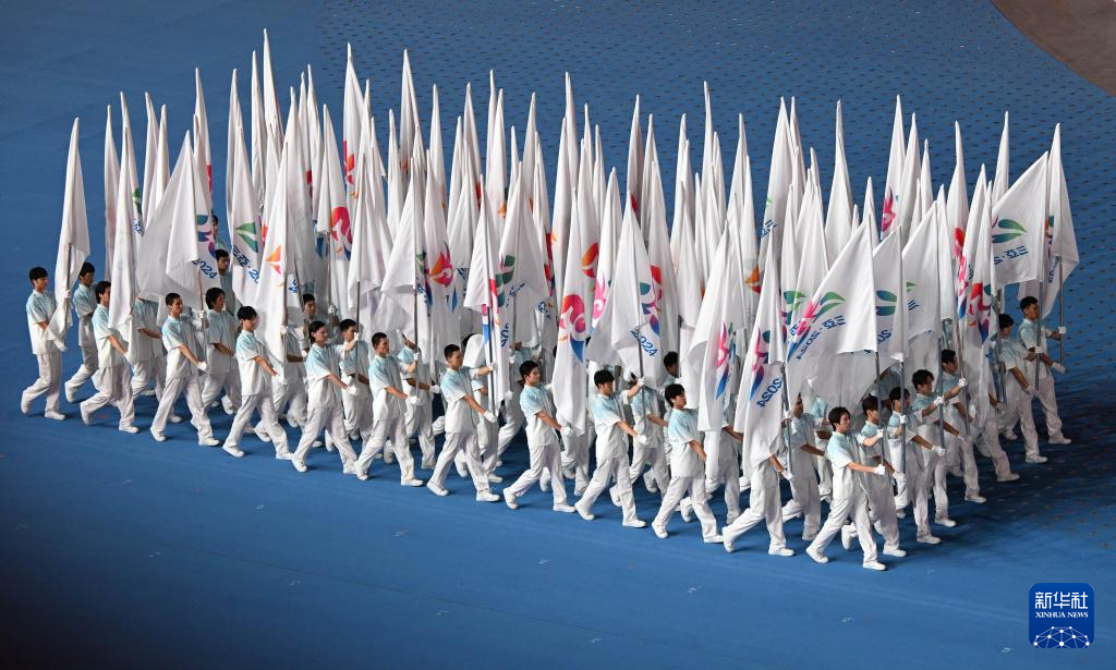 11月22日,中华人民共和国国旗在开幕式上入场。新华社记者 张博文 摄