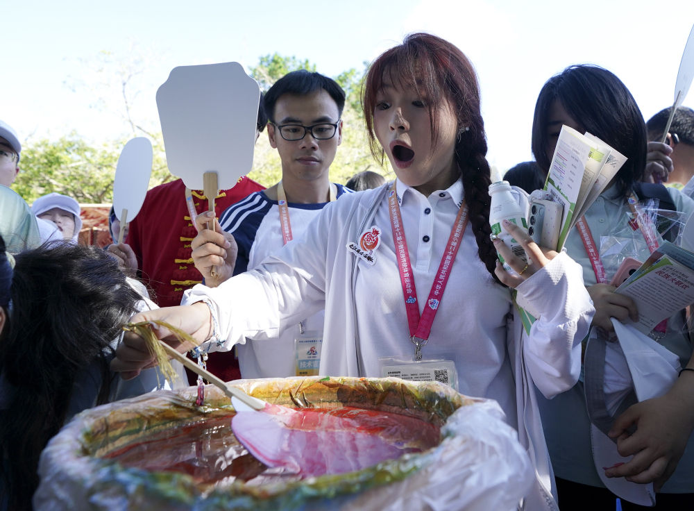 ↑广东代表团运动员在活动现场打卡拍照。新华社记者 杨植森 摄