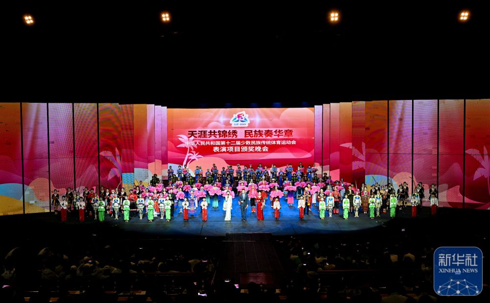 11月29日,第十二届全国少数民族传统体育运动会表演项目颁奖晚会在海南三亚举行。