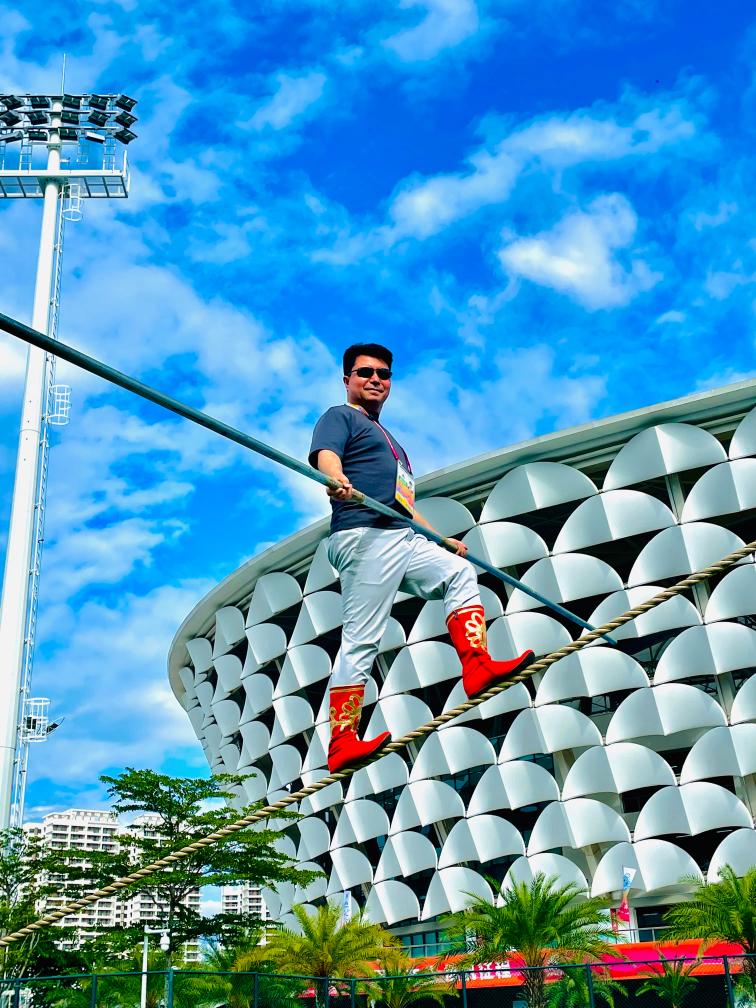 如果非要在运动会上找一位有名的明星,那非“高空王”阿迪力莫属了。作为国家级非物质文化遗产项目维吾尔族达瓦孜代表性传承人,阿迪力早在1997年就凭借这项古老的技艺跨越长江天险,创造了吉尼斯纪录,让达瓦孜这个民族体育文化的瑰宝走出天山,名噪神州大地。