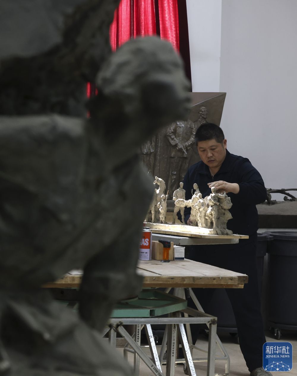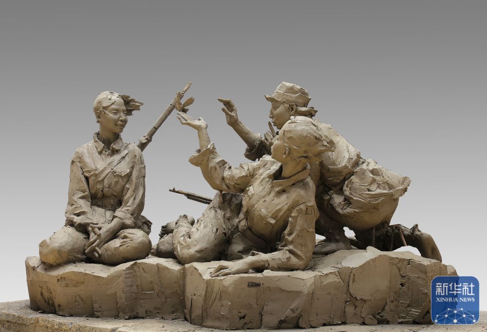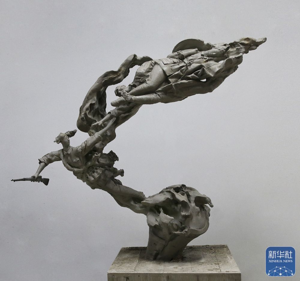 ↑ 这是解放军文工团雕塑创作员郎钺参与创作的雕塑《前赴后继》。新华社发