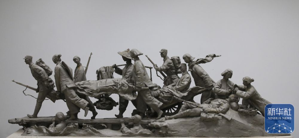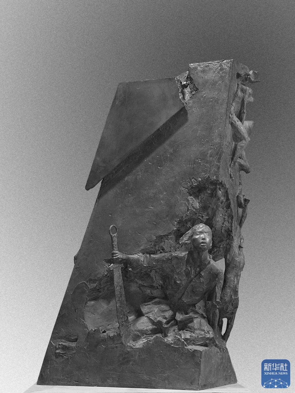 ↑ 这是中国人民革命军事博物馆创作员谈强创作的雕塑《英魂碧血染山河》。新华社发