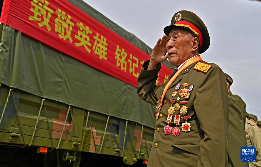 仪式结束后,志愿军烈士遗骸棺椁在70辆警用摩托车组成的骑警车队护卫下,由6辆军用运输车送往沈阳抗美援朝烈士陵园。29.7公里的归途设置国旗近3500面,沈阳各界群众沿途列队迎接英雄回家,各交通要点、营运车辆和主要建筑打出向英雄致敬的标语。