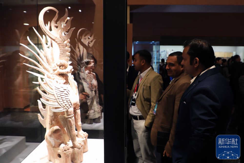 ↑ 10月12日,外国嘉宾在敦煌市博物馆参观。新华社发(王生元摄)