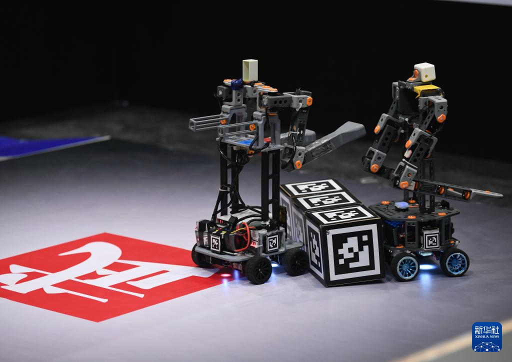 10月17日,篮球机器人在河北省石家庄国际会展中心进行比赛。新华社发(陈其保摄)