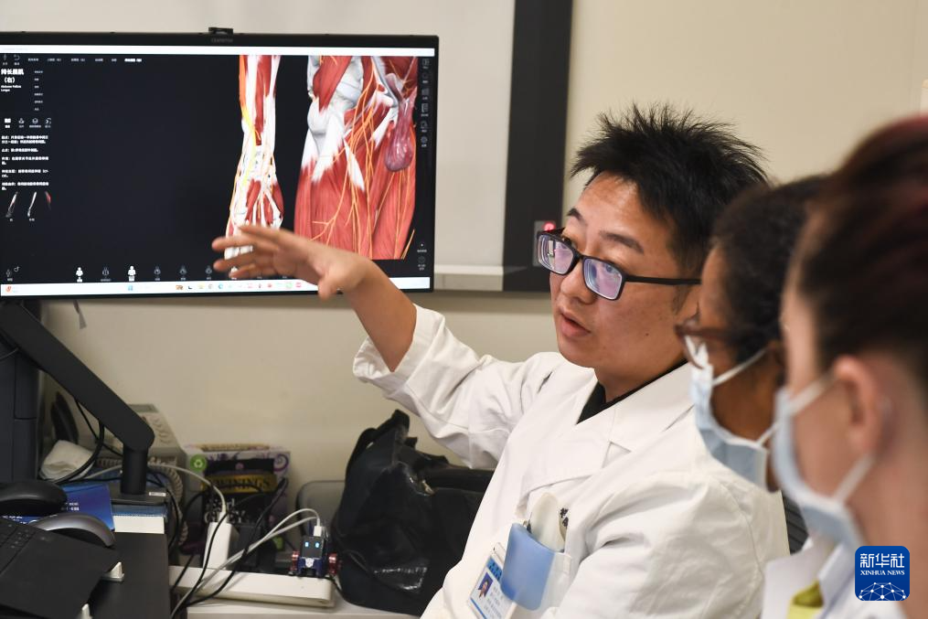 10月22日,在南京鼓楼医院,中医科医生为来自不同国家的见习医生讲解中医术。新华社发(杨素平 摄)