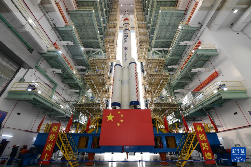 10月24日,神舟二十一号载人飞船与长征二号F遥二十一运载火箭组合体准备转运。新华社发(汪江波摄)