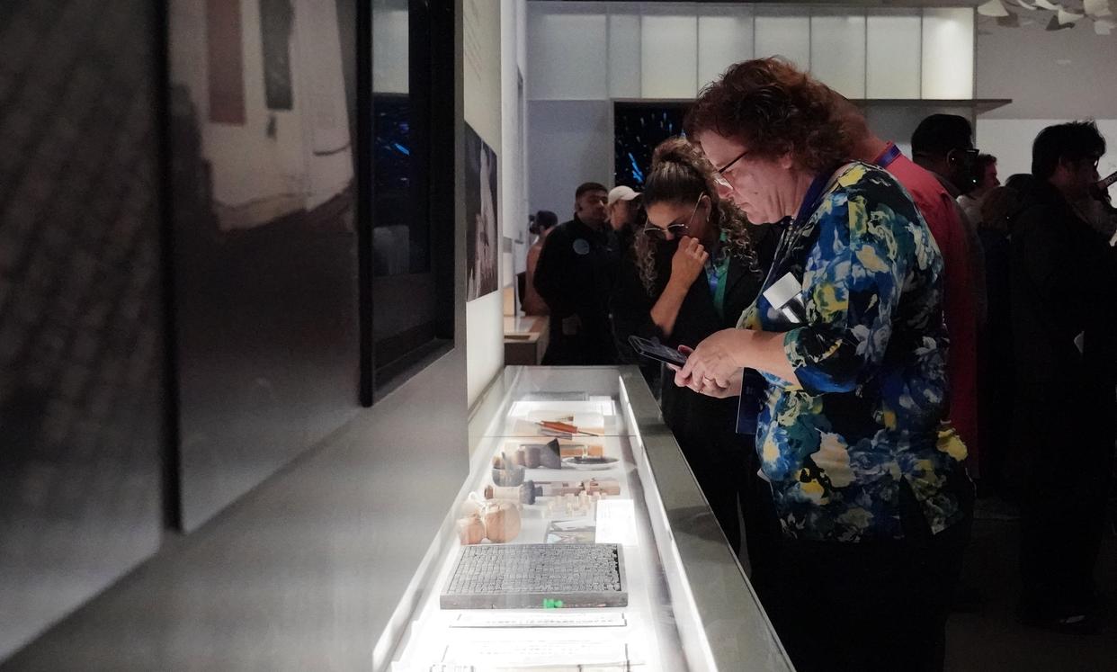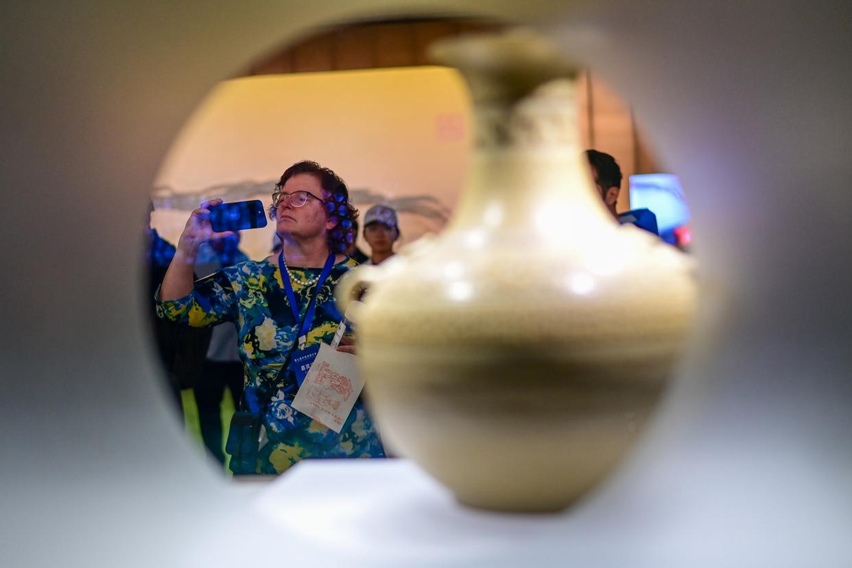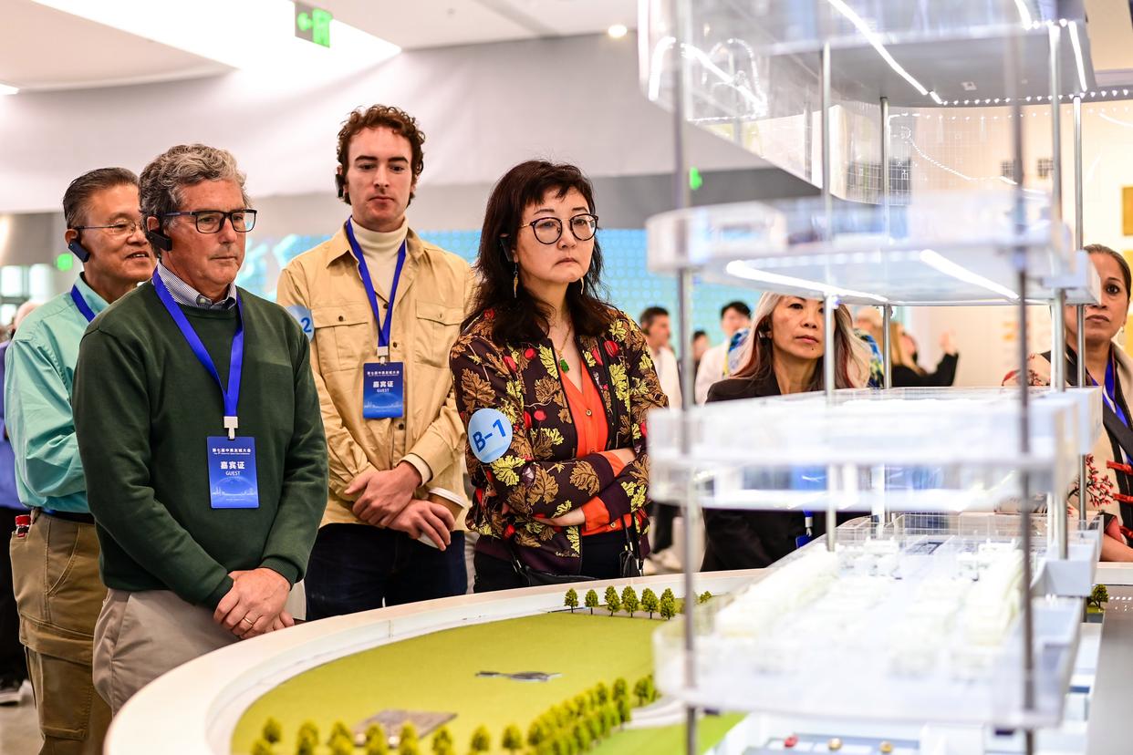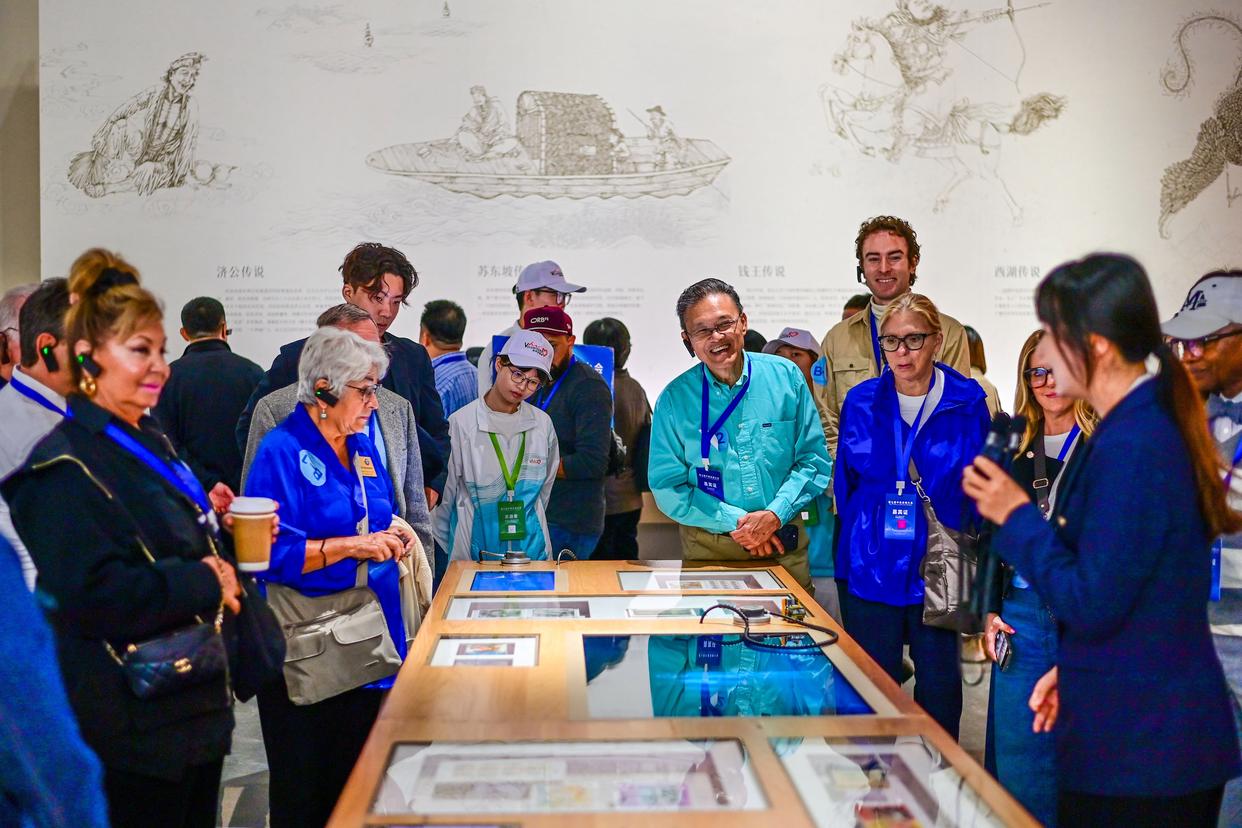 10月26日,参加第七届中美友城大会的嘉宾参访之江文化中心浙江省非物质文化遗产馆。新华社记者 张曼怡 摄