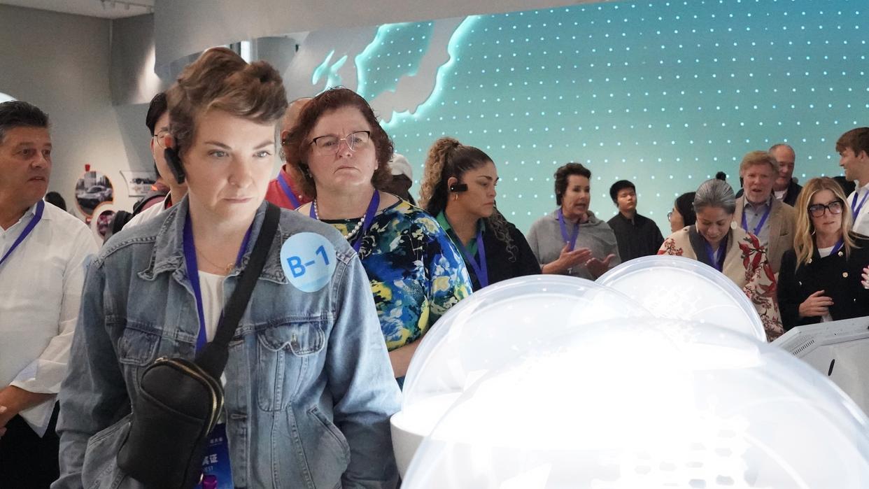 10月26日,参加第七届中美友城大会的嘉宾参访位于杭州市的万向集团。新华社记者 张曼怡 摄
