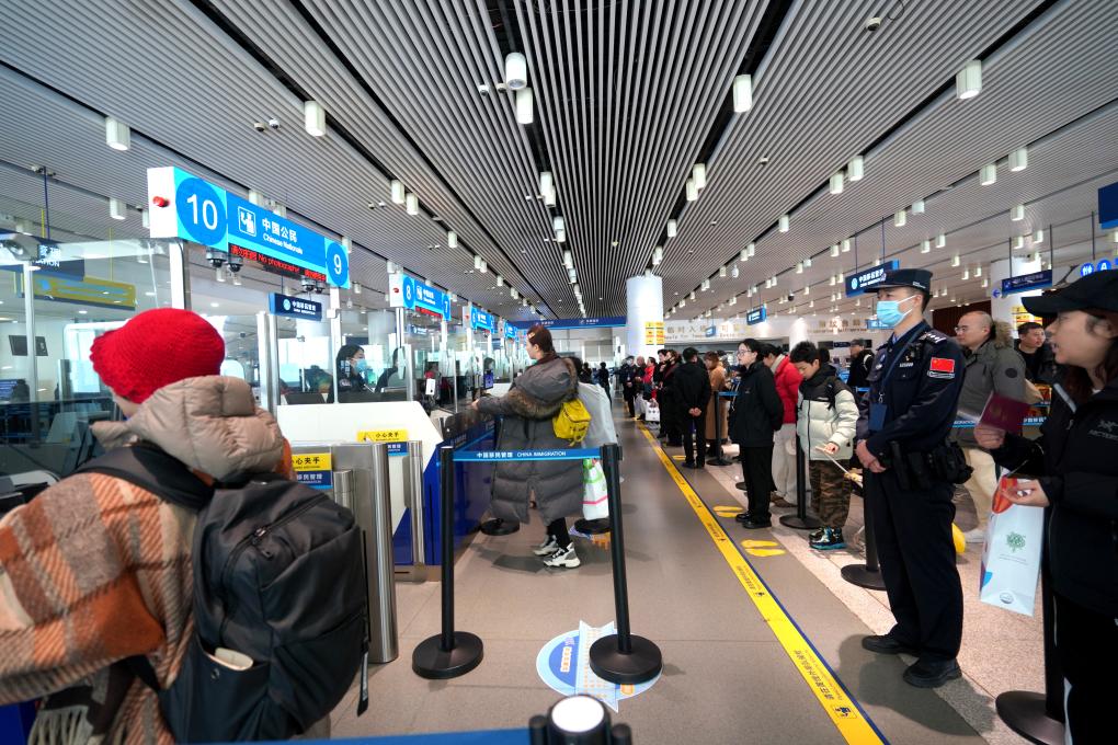 为妥善应对“海上春运”客流高峰,天津东疆边检站同步开启人工通道和快捷通道,安排专人在候检区域进行前置引导,根据客流变化动态调整查验通道数量,提前分析旅客构成,针对春运航线老人和孩子占比较高的特点,优化查验流程,提前为老人和行动不便旅客加开特别通道,为“海上春运”保驾护航。