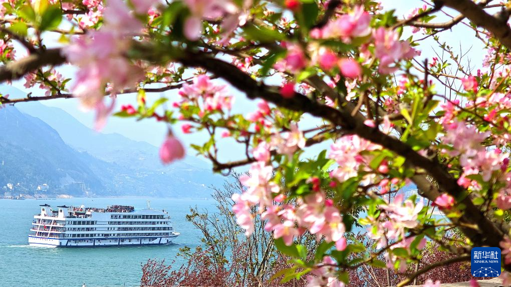 3月13日,重庆市巫山县境内长江三峡巫峡两岸桃花、海棠花盛开。新华社发(王忠虎 摄)