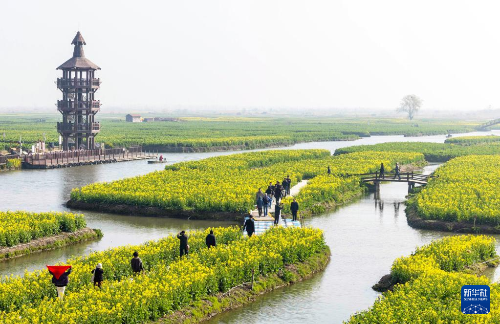3月14日,江苏省兴化市千垛景区开园迎客,游客在景区内赏花游玩。新华社发(汤德宏摄)