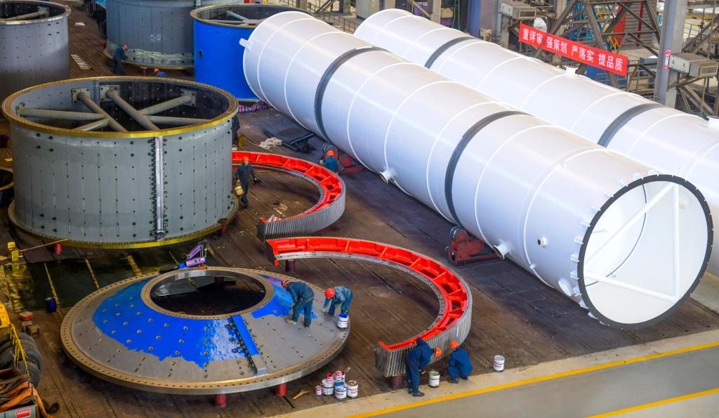 2026年2月24日,在河南省洛阳市中信重工生产车间,工人在加工生产订单产品。新华社发(张怡熙摄)