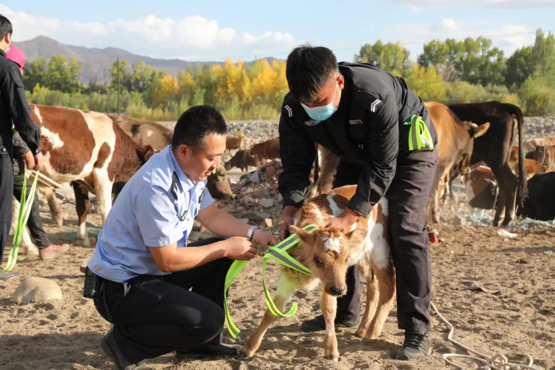 富蕴县公安局铁买克乡派出所教导员包尔江·阿不都热合曼说:“目前我们在铁买克乡辖区内农牧民转场必经之路设立了一处对牲畜进行反光带捆绑的卡点,另外一组已深入到农牧民转场秋牧场,对已到秋牧场的牲畜进行捆绑反光带。截至目前,我们对大型牲畜8000余头完成了捆绑反光带的工作,此项工作我们还在继续开展当中。”