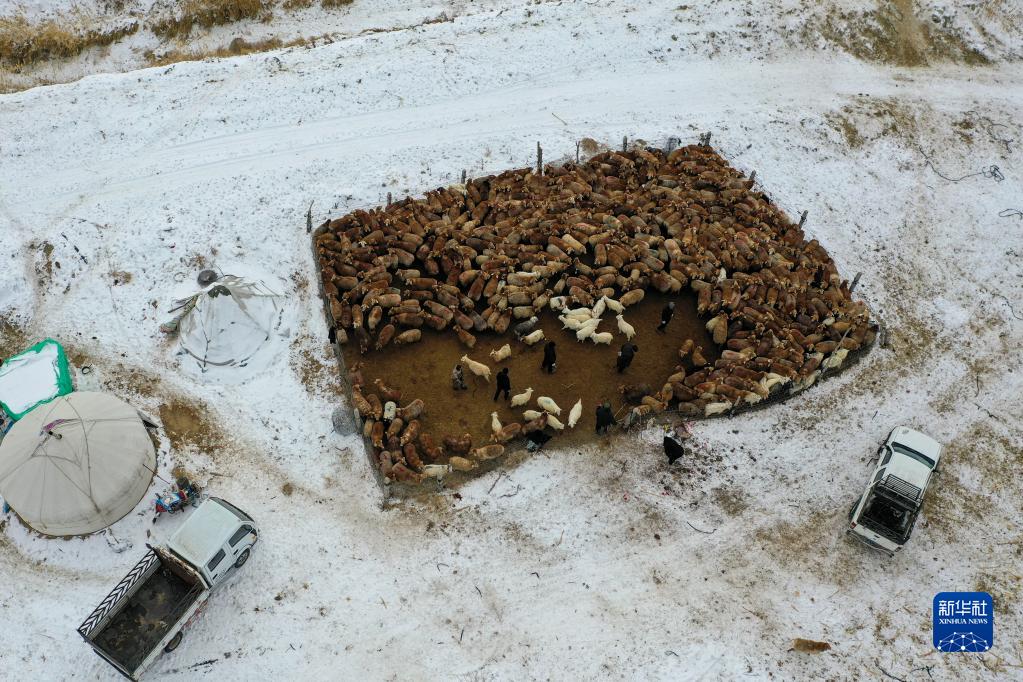 立冬后,新疆各地牧民陆续赶着牛羊进入冬牧场生活。在阿尔泰山南麓广大牧区,天气越来越冷,降雪将大山与草原“染”白。牧民在忙些什么?日子过得怎么样?几天前,记者来到新疆牧业大县——阿勒泰地区福海县,探访冬牧场的牧民。