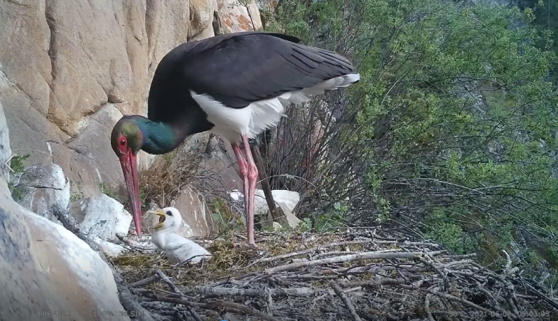 黑鹳在给幼鸟喂食鱼儿。受访者提供
