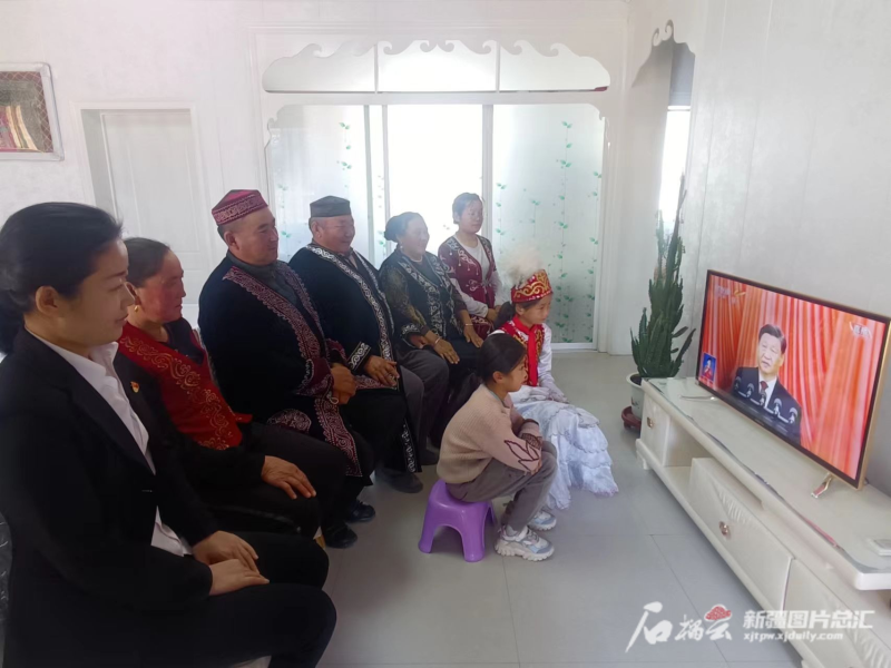 10月16日,富蕴县可可托海镇塔拉特村村“两委”、农(牧)家乐、民宿经营者代表一起观看党的二十大开幕会。傅轩摄