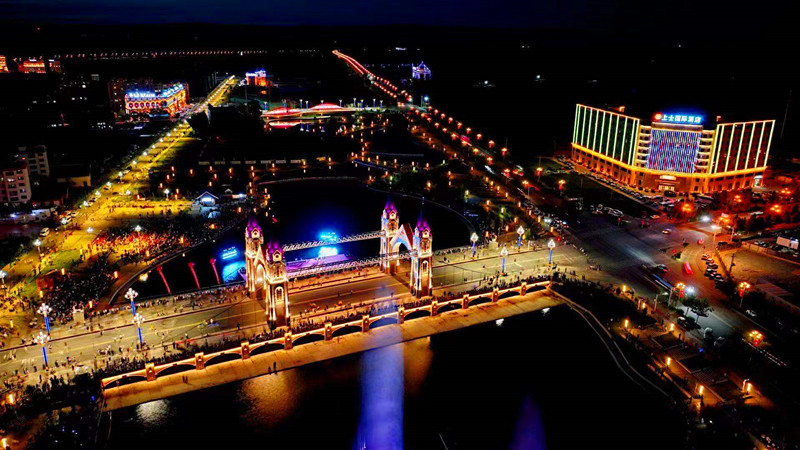“晚上走在布尔津县的街头,灯光璀璨,尤其是七彩河那边特别漂亮,网红桥就像童话里的城堡,音乐喷泉光影秀也让人震撼,现在布尔津发展得这么好,我们在这里生活很幸福。”10月24日,布尔津县布尔津镇居民王丽说。
