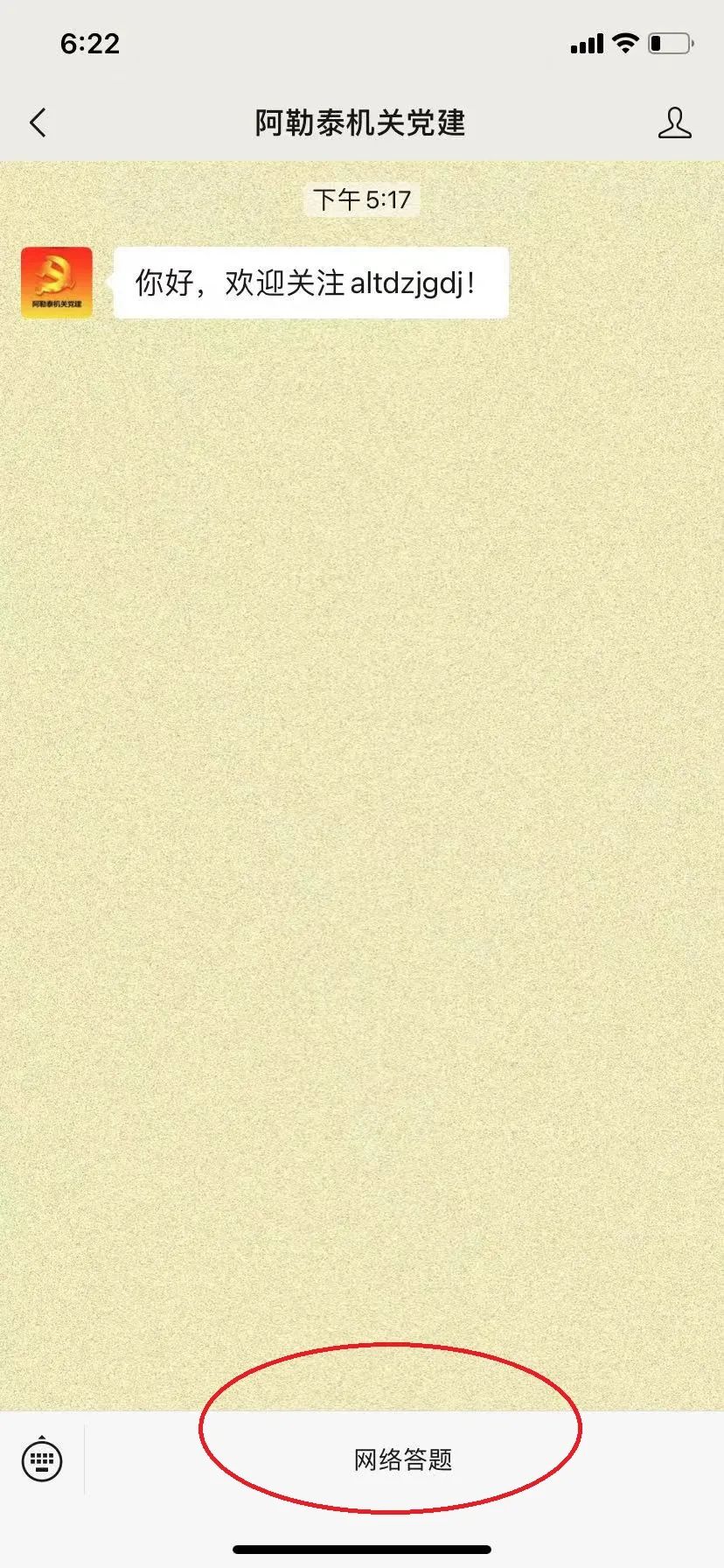 02从公众号菜单栏-“网络答题”入口进入《阿勒泰地区机关党员干部学习宣传贯彻党的二十大精神网络答题活动》平台。