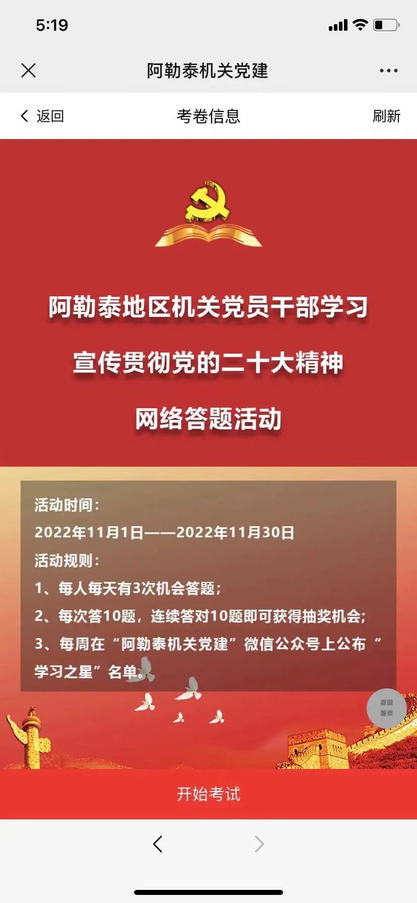 阿勒泰地区机关党员干部学习宣传贯彻党的二十大精神网络答题活动开始啦!