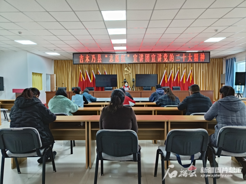 10月31日,吉木乃县“志愿红”宣讲团在托斯特乡宣讲党的二十大精神。阿来古丽•托合什摄