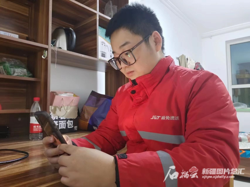 快递小哥通过“天山工惠”小程序提交送温暖救助金的申请。阿勒泰地区邮政管理局供图