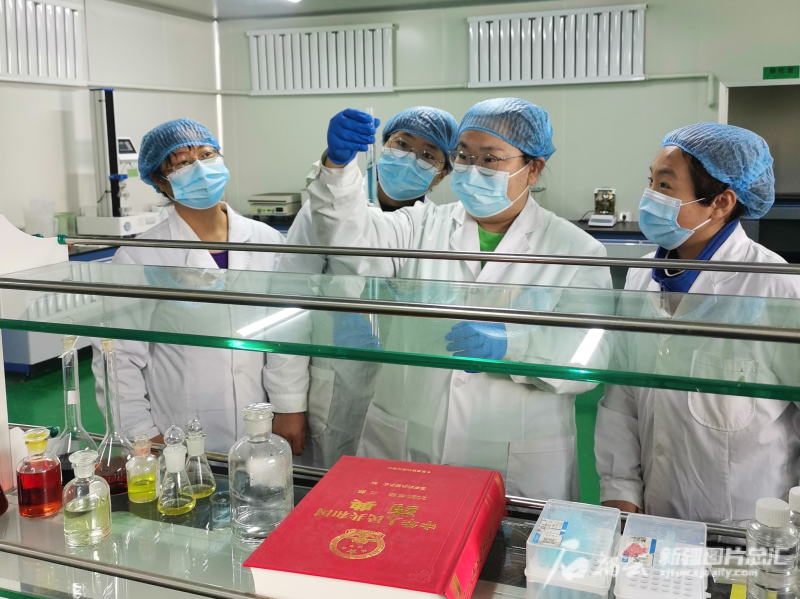 新疆荣成哈克制药有限公司工作人员正在进行柯孜木克颗粒相关标准质量检测。郭峰摄