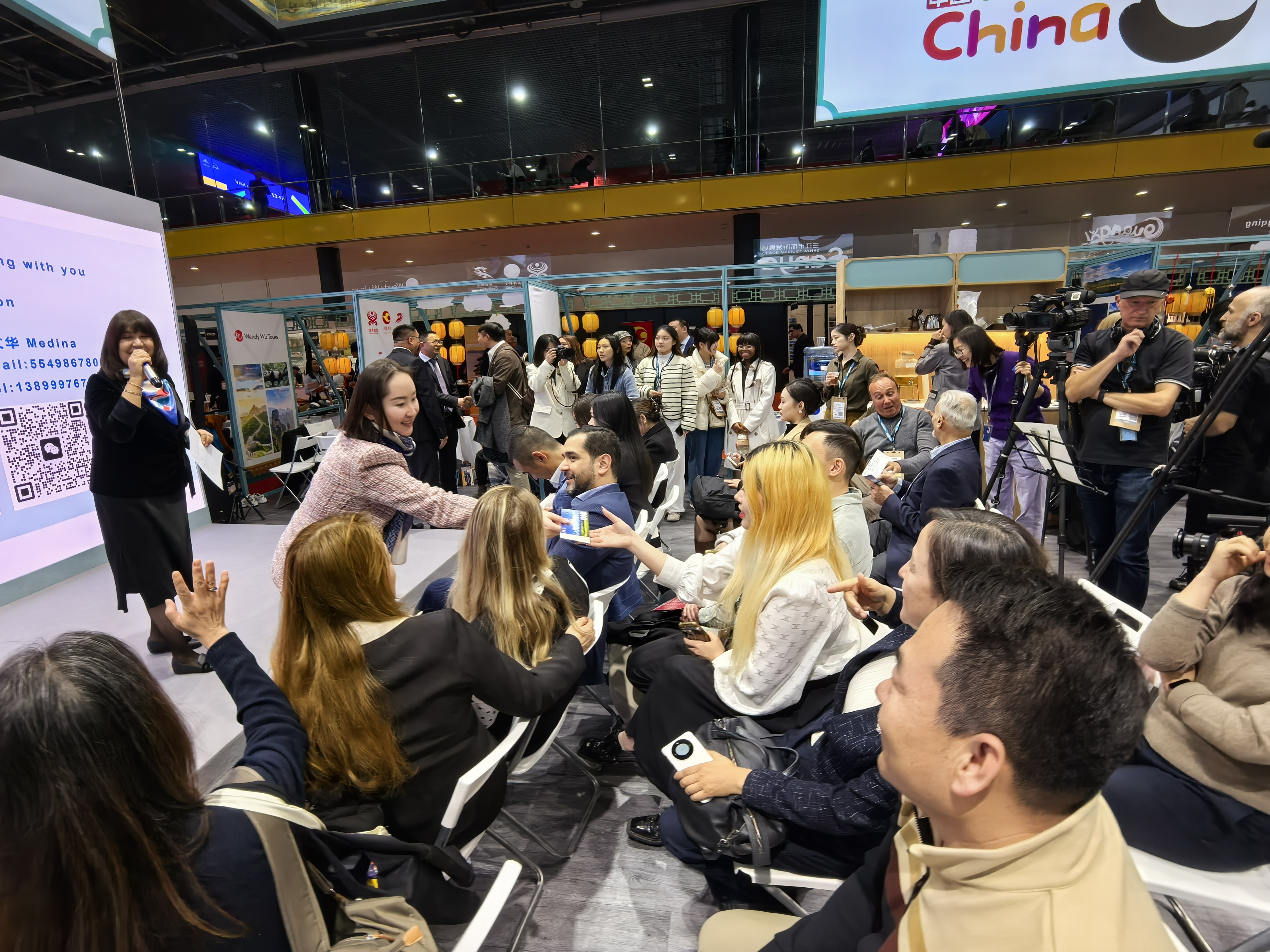 精彩的文旅宣传片,让各国参展商对大美新疆有了更多了解。推介官介绍了新疆的自然风光、文化遗产、民族风情、旅游基础设施、旅游产品体系以及旅游交通发展等情况,特别介绍了南北疆旅游看点、美食之旅、探险之旅、冰雪之旅等精品旅游线路,各国旅行商对新疆的旅游资源表现出非常高的兴趣,纷纷向推介官了解入境游及相关问题。