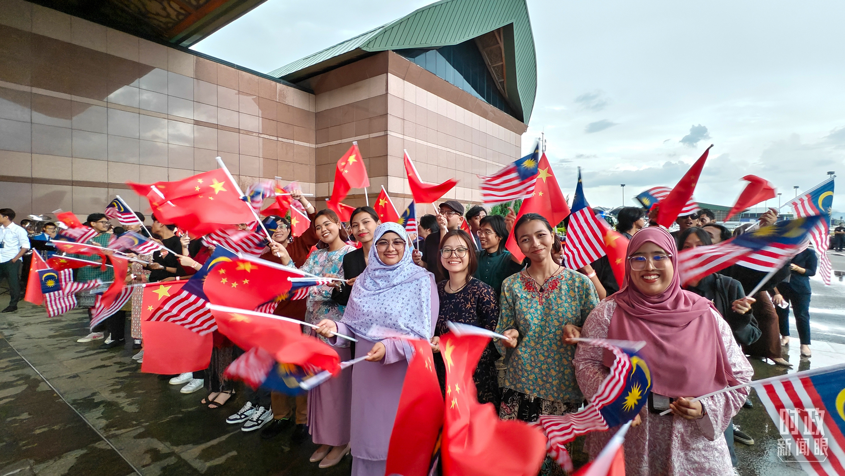 △在机场迎接习近平主席的马来西亚当地民众。(总台央视记者韩锐拍摄)