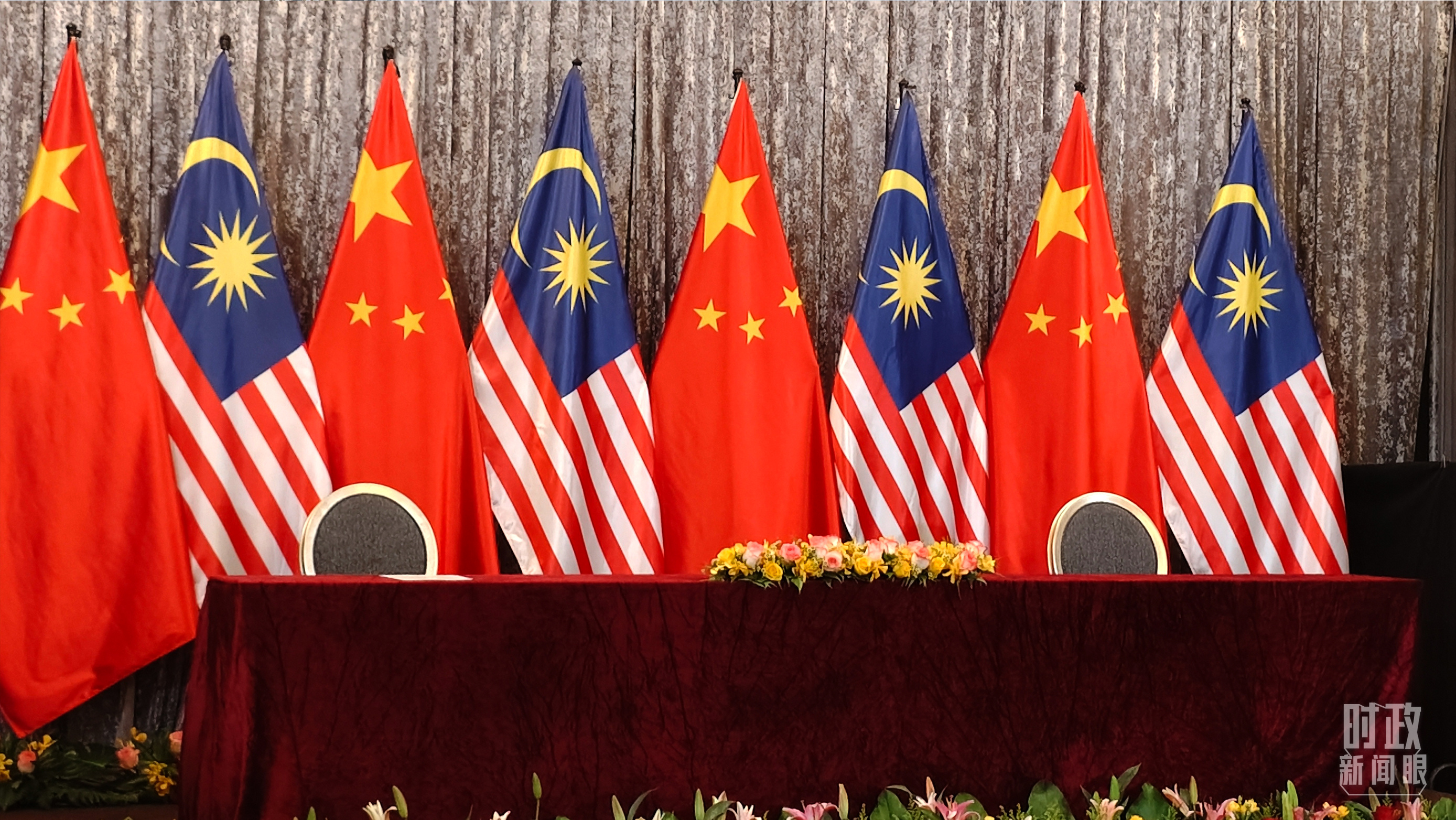 △习主席和马来西亚总理安瓦尔在这里共同见证中马双方交换30多份双边合作文本,这是开始前的现场。(总台央视记者韩锐拍摄)