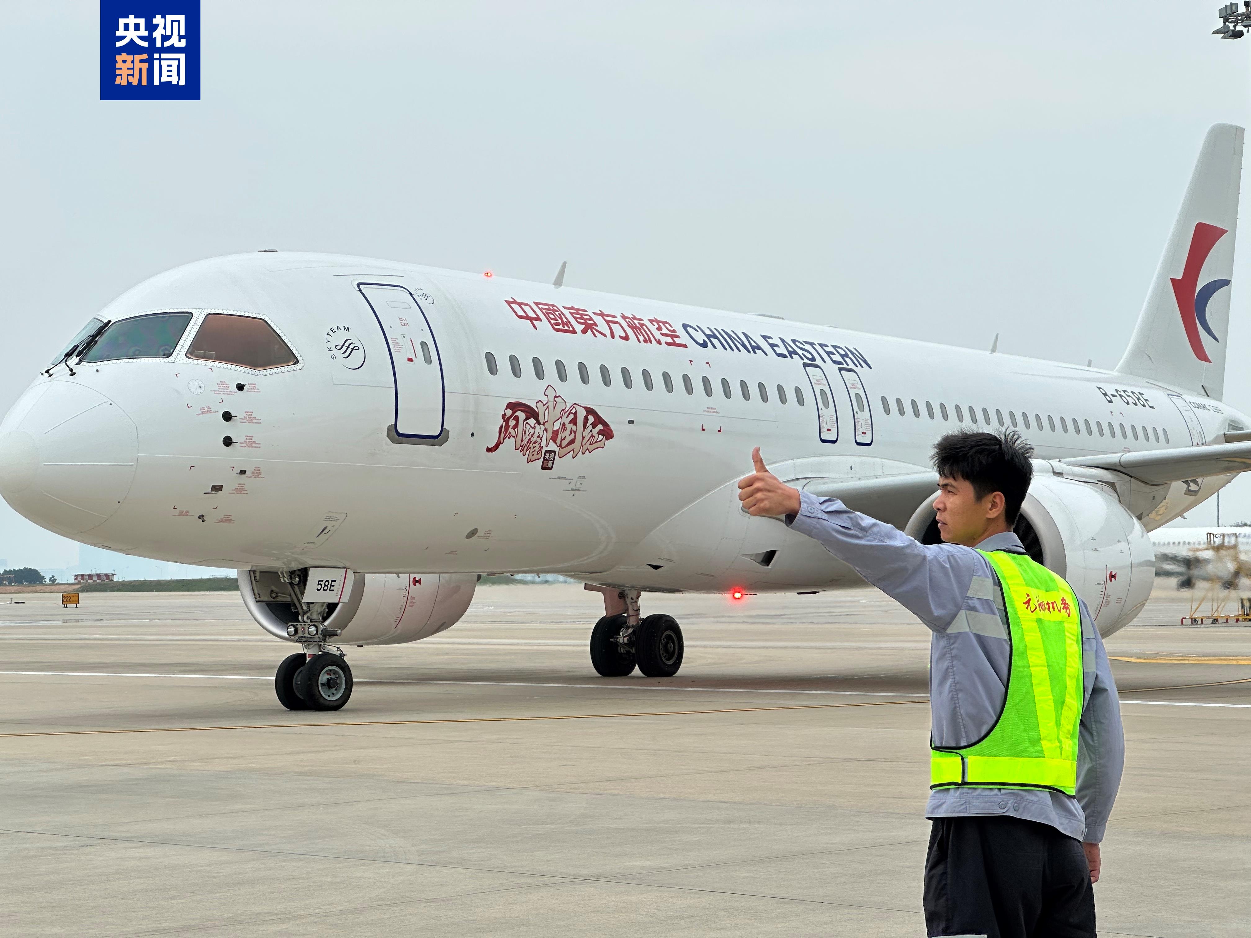 △2025年5月25日,国产大飞机C919执飞MU5247航班从上海虹桥机场出发,搭载着148名旅客抵达厦门高崎国际机场,完成厦门首航。