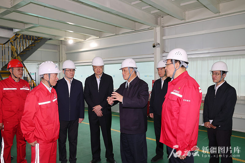 5月7日,自治区党委书记马兴瑞在位于米东区的新疆亚欧稀有金属股份有限公司,察看车间生产实况,听取企业经营发展工作介绍。天山网-新疆日报记者 崔志坚摄