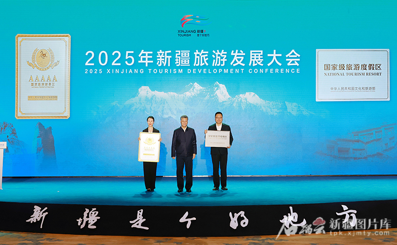 石榴云/新疆日报讯(记者 王兴瑞报道)5月25日,自治区和兵团在阿克苏地区库车市联合召开2025年新疆旅游发展大会。自治区党委书记、兵团党委第一书记、第一政委马兴瑞出席会议,并为2024年获评国家5A级旅游景区的天山托木尔景区、获评国家级旅游度假区的青格达湖旅游度假区授牌。
