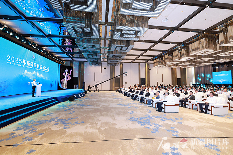 王建新主持。哈丹·卡宾和自治区人大、政府、政协、兵团有关领导,中国商飞公司负责同志,文化和旅游部有关同志,来自33个国家的驻华使节、政府和企业代表等嘉宾,国际旅游组织、国际旅行商、金融机构代表,国内文旅行业专家、重点文旅企业、各省区市文旅部门有关负责同志,各地州市和兵团各师市负责同志,自治区和兵团旅游产业发展领导小组部分成员单位负责同志,文化名人、文艺工作者、网络达人代表,自治区旅游行业协会、旅游景区、文旅企业代表等参加会议。