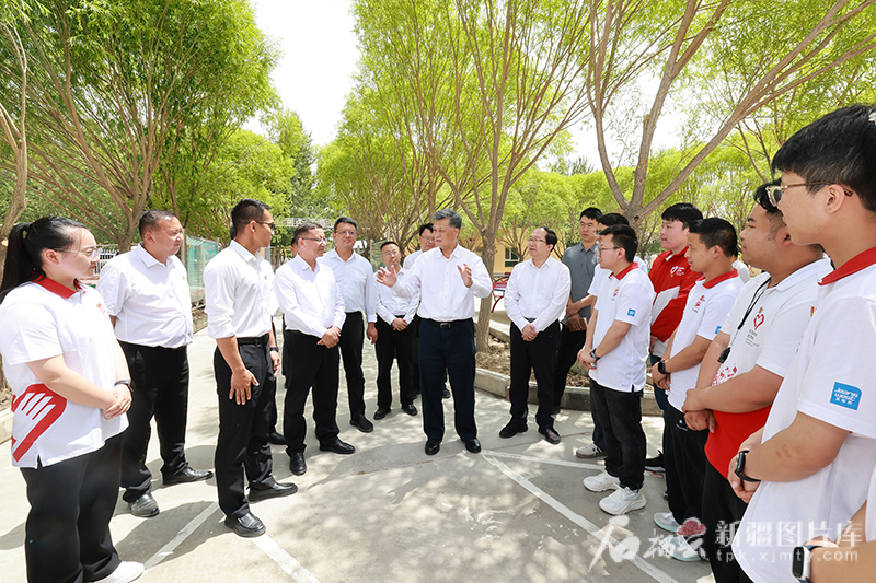 5月27日,自治区党委书记马兴瑞来到阿图什市哈拉峻乡谢依特小学,亲切看望戍边支教西部计划志愿者服务队队员,同大家热情交流,关切询问工作生活情况。天山网-新疆日报记者 崔志坚摄