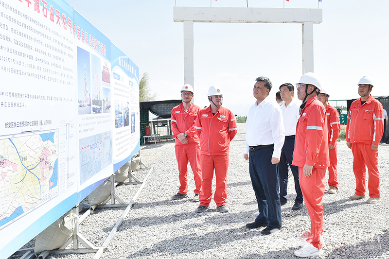 在石河子,马兴瑞先后实地调研了新疆华源石油天然气开发有限公司新安1井、新疆油田公司采气一厂玛河采气作业区锋探1井。在详细了解区块油气资源蕴藏、探采进度、项目投资等情况后,他强调,要站在保障国家能源安全的战略高度,大力支持兵团能源资源产业发展,强化政策支持和设施保障,持续推进油气增储上产,多措并举提升供应保障能力。要加快油气资源就地加工转化,不断延伸产业链,推动产业集群集聚发展。