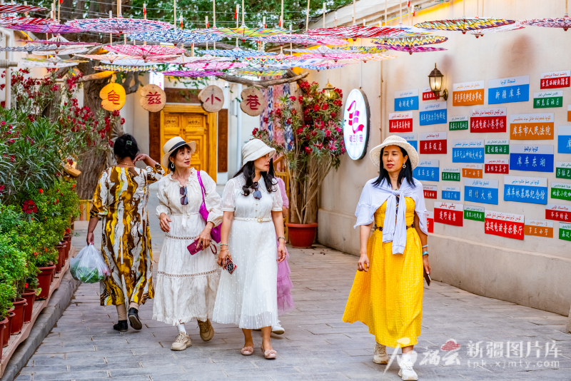平生看尽山千万,不及龟兹一片云。6月27日,来自浙江省宁波市的一批游客兴致勃勃地游览了阿克苏地区库车市的龟兹小巷。