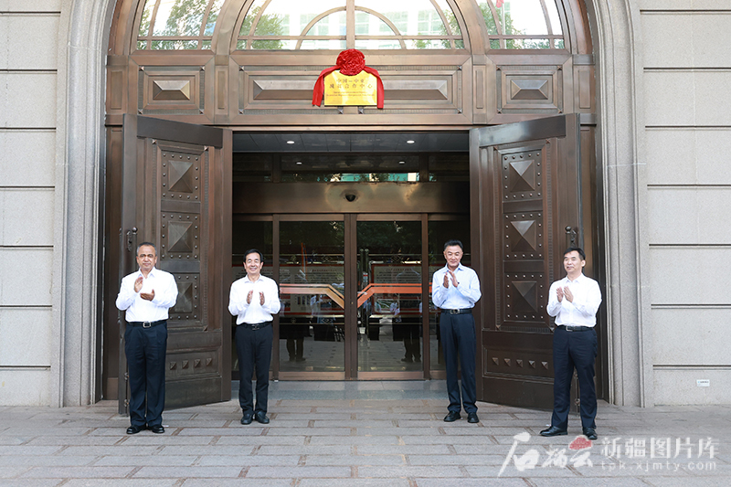 7月21日,自治区党委书记、兵团党委第一书记、第一政委陈小江,自治区党委副书记、自治区主席艾尔肯·吐尼亚孜,中国—中亚机制秘书长孙炜东等在自治区教育厅为中国—中亚教育交流合作中心挂牌。石榴云/新疆日报记者 崔志坚摄