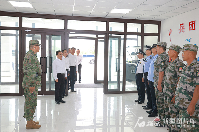 8月5日,自治区党委书记、兵团党委第一书记、第一政委陈小江来到兵团第四师可克达拉市62团边防指挥中心,看望慰问一线执勤人员。天山网-新疆日报记者 崔志坚摄