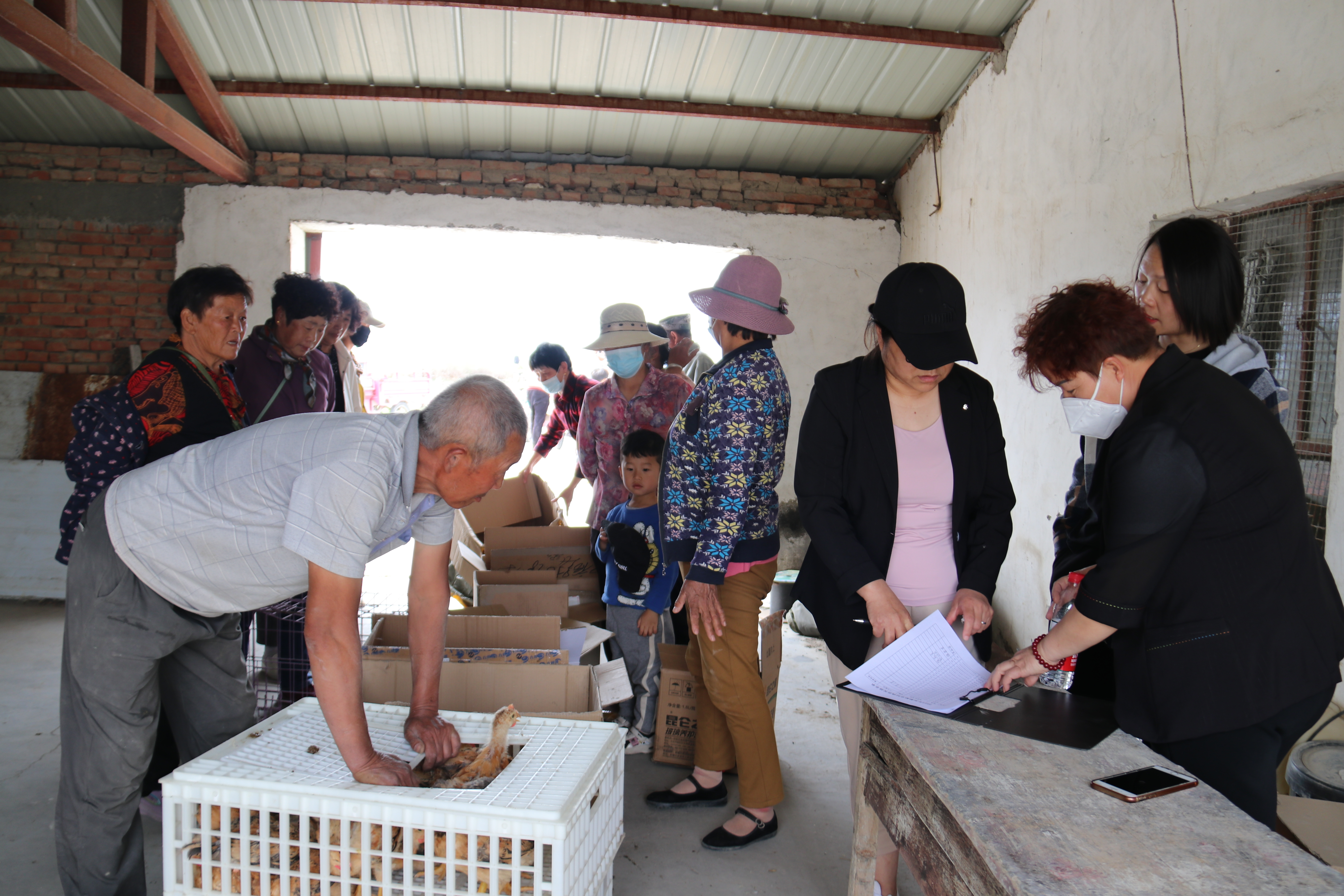 “大家先来登记签字,按照名单上的数量领取,今天天气热,领回去过后要放在阴凉处,等半个小时后再给鸡喂少许的水,领完鸡苗的来我这打个疫苗……”5月30日一大早,福海县解特阿热勒镇加勒帕克村党支部书记高海霞招呼着村民领取鸡苗。她告诉记者,此次发放免费鸡苗共计450只,价值9450元,由村“两委”和“访惠聚”驻村工作队共同出资,经过养殖预计每只可达3公斤以上,按市场价30元/公斤计算,每只可获利100元以上。高海霞说:“通过今天为我们村60岁以上的老人发放鸡苗,提升了他们的获得感、幸福感、也彰显了党对各族群众的关心和关爱。”