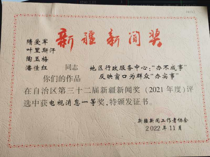 2022年,地区融媒体中心共有16件接地气、暖人心的作品荣获第三十二届新疆新闻奖,其中一等奖2件、二等奖2件、三等奖12件。禁毒微电影《暖光》获全国公安系统扫黑除恶优秀作品奖;《幸福是奋斗出来的》荣获石榴云平台二等奖,话剧《屈原》荣获2022年度全疆中学生优秀作品一等奖。