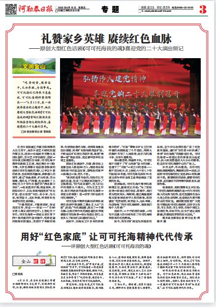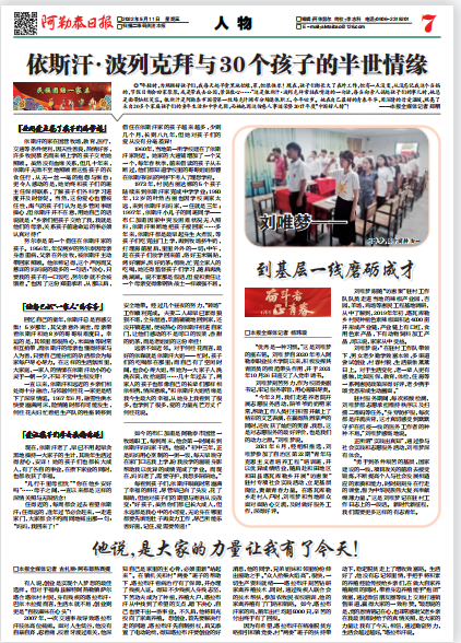 2. 落实文化润疆工作,大力弘扬中华优秀传统文化,立体式讲好阿勒泰故事。开设“文化润疆”“铸牢中华民族共同体意识”“我们的节日”“网络中国节”“文润金山”“千字文”等专题专栏,精心策划推出阿勒泰民族团结、卫国戍边、生态文明、家园情怀典型宣传,采写推出全国民族团结进步模范阿尼帕·阿力马洪,阿勒泰市红墩镇户儿家等民族团结故事,制作播出话剧《党的女儿》《屈原》,在《阿勒泰日报》连续刊载阿勒泰本土作家李娟、小七、杨建英等创作的优秀文学作品。巧借北京“冬奥会”、自治区“两冬会”大力宣传地区冰雪文化,与央视合作播出央视新闻联播《点燃冰雪激情 一起向未来》、与优酷合作播出《追梦冬奥 杨扬、邓亚萍等多名世界冠军鼓励新疆滑雪女孩银花未来可期》,拍摄冬奥热场十城市连线视频,在冬奥开幕前热场电视转播58秒,现场播出视频2分钟,全面呈现人类滑雪起源地、中国雪都阿勒泰元素,创造了11亿流量。开设“雪都地图”抖音号,做好地方特色文化传播,推送的福海元宵节的融元素、吉木乃冬牧节上的羊拍卖等视频获赞超10万,将中华优秀传统文化浸润在活动中展现,将共同体理念根植在地区各族群众的心中。