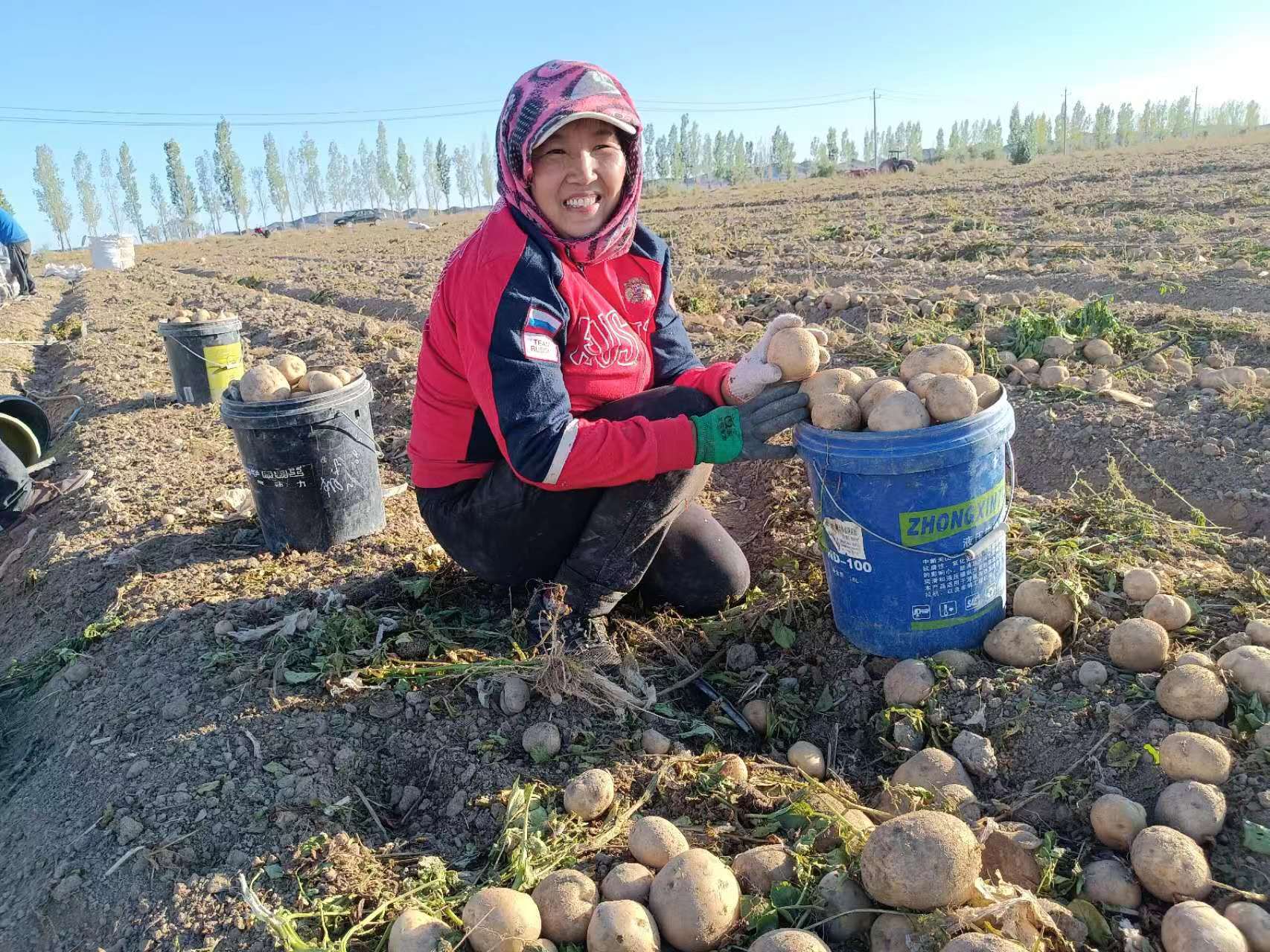 青河县阿格达拉国家级农业产业示范园种植马铃薯获丰收。